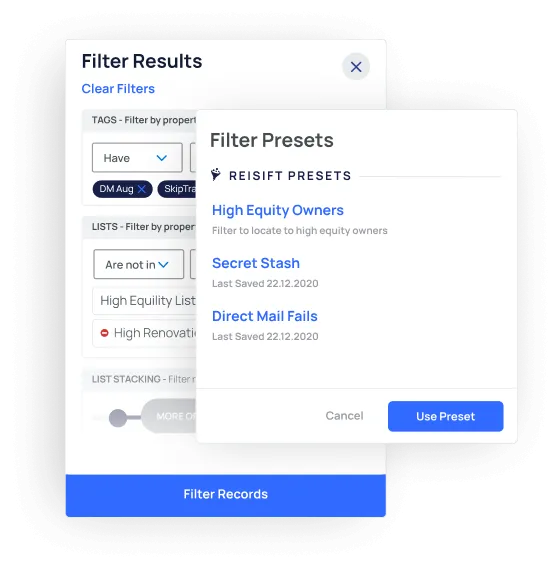 Your marketing is only as effective as your data allows. With REISift, you can improve list hygiene for more targeted marketing campaigns. Organize and filter your data so it’s worthy of your marketing budget.