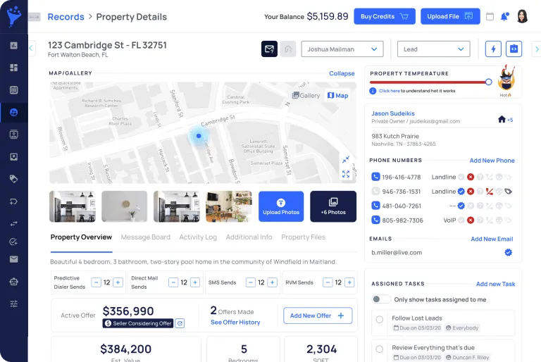 Choose a phone record and call the prospect right inside of your REISift account, which allows your team members to work through data more efficiently.